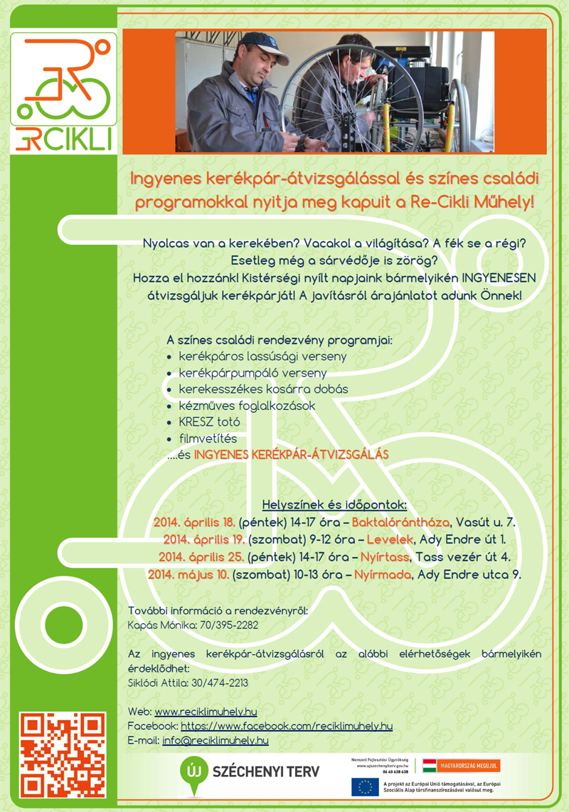 Ingyenes kerékpár-átvizsgálással és színes családi programokkal nyitja meg kapuit a Re-Cikli Műhely!